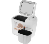 Керамическое покрытие формы для выпечки хлеба и лопатки. 21 автоматическая программа: 9 программ выпечки хлеба. 4 программы приготовления без глютена. 5 программ замеса теста (включая тесто для пиццы и пельменей/вареников). Каждая программа реализует определенный способ приготовления теста/хлеба и подходит для большого количества разнообразных рецептов. Программа приготовления варенья/джема. Программа приготовления фруктов в сиропе . Выбор цвета корочки (3 варианта: светлый, средний, темный). Выбор размера буханки (3 варианта). Таймер отсрочки выпечки до 13 часов. Минимальное время выпечки хлеба 1 час 55 мин. Максимальное время выпечки хлеба 5 часов 40 мин. Антипригарное покрытие формы для выпечки . Лаконичный дизайн. Габаритные размеры - 408 x 252 x 362 мм. Вес нетто - 6,5 кг. Потребляемая мощность - 505-550 Вт. Цвет: белый.