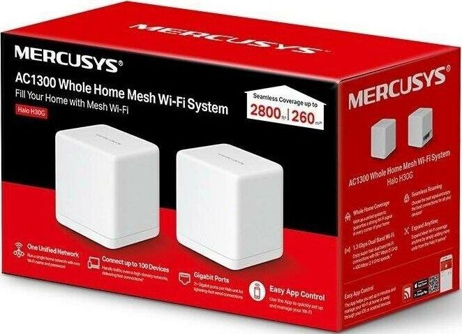 MERCUSYS Бесшовный Mesh роутер Halo H30G (HALO H30G(2-PACK)) AC1300 10/100/1000BASE-TX белый (упак.: