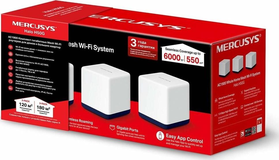[Mercusys] Mercusys Halo H50G(3-pack) AC1900 Домашняя Mesh Wi-Fi система