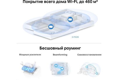 Wi-Fi система (комплект), стандарт Wi-Fi: Wi-Fi 6, частотный диапазон 2.4/5 ГГц, макс. скорость: 2976 Мбит/с, 3xLAN, скорость портов 1000 Мбит/с
