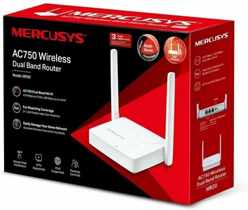[Mercusys] Mercusys MR20 AC750 Двухдиапазонный Wi-Fi роутер