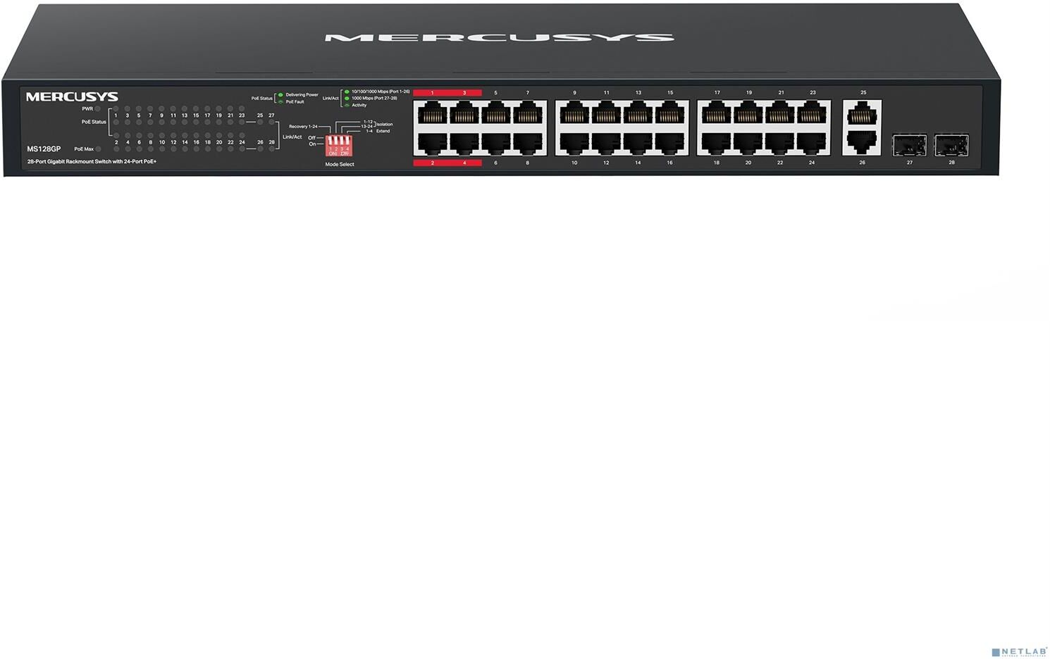 [Mercusys] Mercusys MS128GP 28-портовый гигабитный монтируемый в стойку коммутатор с 24 портами PoE+