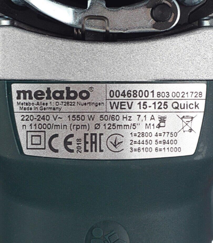 METABO Угловая шлифмашина WEV 15-125 Quick [600468000]