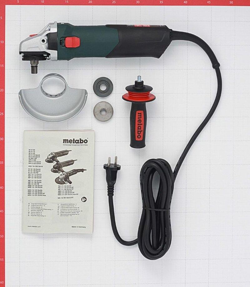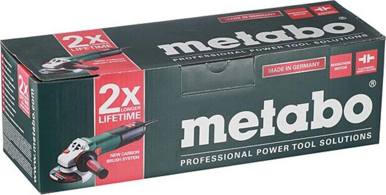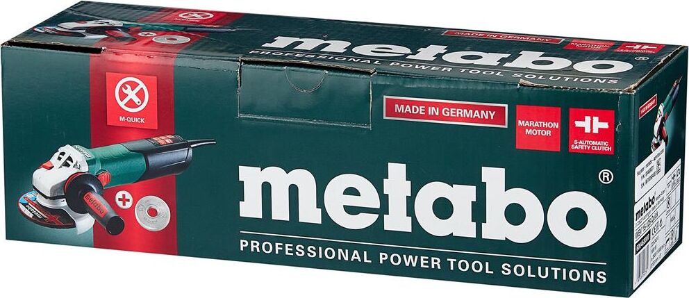 Мощность: 1550. Выходная мощность: 940. Регулировка частоты оборотов: есть. Диаметр шлифовального круга: 125. Резьба шпинделя: M14. Система гашения вибрации: есть. Блокировка шпинделя: есть. Плавный пуск: есть. Защита от непреднамеренного включения: есть. Поворот рабочей головки: нет. Вес товара: 2.5. Особенности: Длина провода - 4 м.. Комплект поставки: Углошлифовальная машина; защитный кожух; опорный фланец; зажимная гайка M-Quick; дополнительная рукоятка Metabo VibraTech (MVT).. Суперфланец: нет. Тип электропитания: от электросети. Габариты упаковки (ед) ДхШхВ: 0.385x0.126x0.12. Вес упаковки (ед): 3.38. Тип электрического двигателя: щеточный. Страна производства: Германия. Кейс в комплекте: нет. Бесключевая замена оснастки: есть. Датчик падения: нет. Защита двигателя от перегрева: есть. Класс инструмента: профессиональный. Общее количество рукояток: 2. Количество скоростей: 1. Поддержание постоянных оборотов под нагрузкой: есть. Посадочный диаметр: 22.2. Предохранительная муфта: есть. Рукоятка с мягкой нак