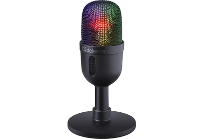Базовый игровой микрофон с RGB-подсветкой и кнопкой выключения микрофона. Совместим с любыми ПК и ноутбуками с разъемом USB.