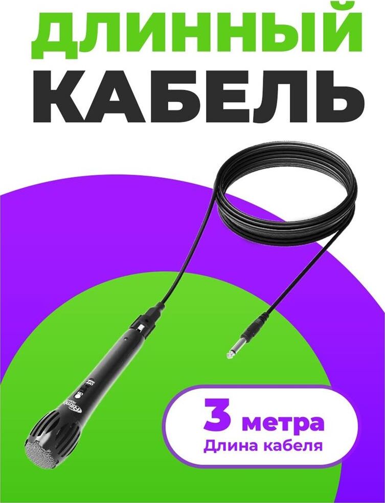 Микрофон проводной, частотный диапазон: 60 - 15 000 Гц, сопротивление: 600 Ом, чувствительность: 54 дБ ± 3 дБ, длина провода: 3 м