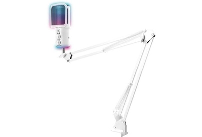 Микрофон проводной c пантографом Тип микрофона: конденсаторный, Диаграмма направленности: кардиоида, Подключение Type-C - USB A / Type-C, Jack 3,5 мм на наушники, Подсветка, шумоподавление, Кнопка отключения зввука микрофона, Кнопка управления подстветкой, Регулировка звука на корпусе, Регулировка эха на корпусе, Материал: металл + пластик, Размеры микрофона: 5 * 15* 5 см Цвет: белый