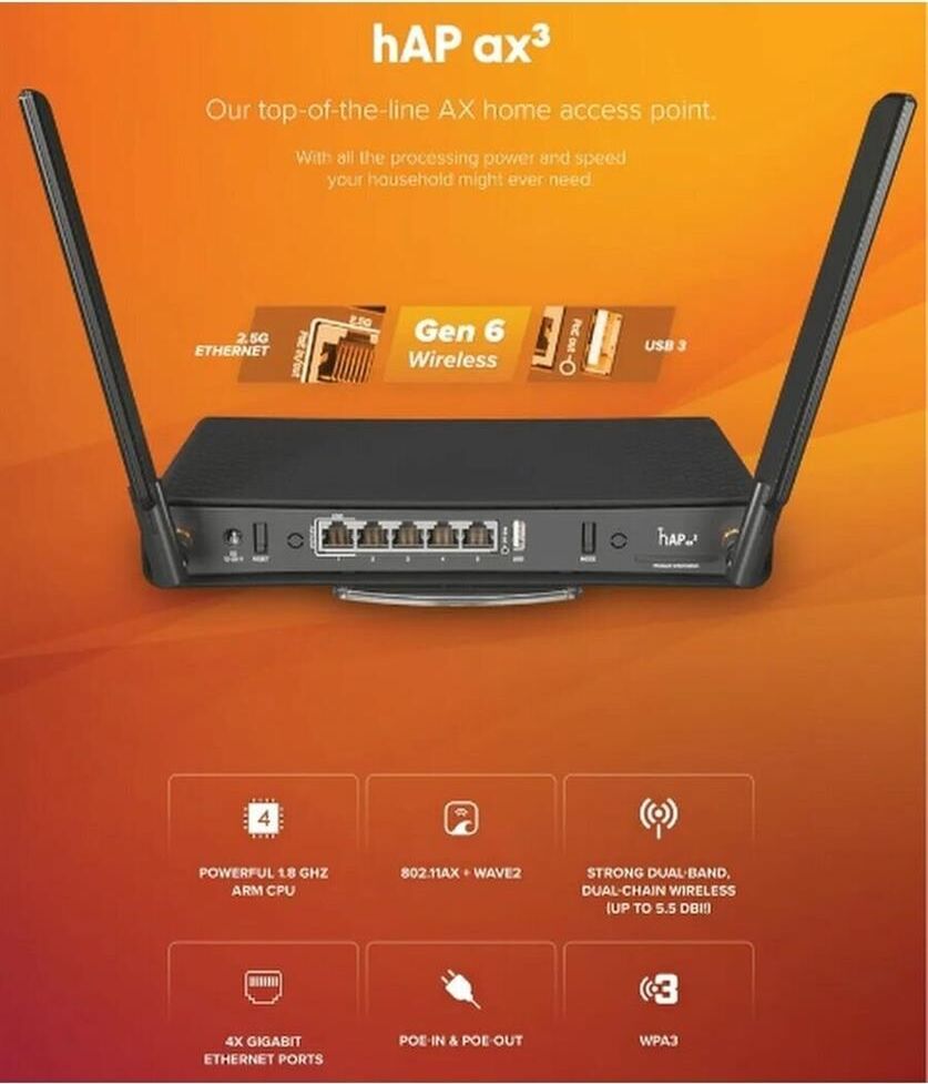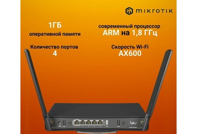 MIKROTIK Маршрутизатор C53UiG+5HPaxD2HPaxD (AX1800, 1x1000Mbs WAN, 4x2500Mbs LAN, USB) (C53UiG+5HPax