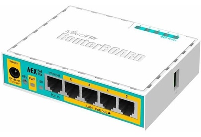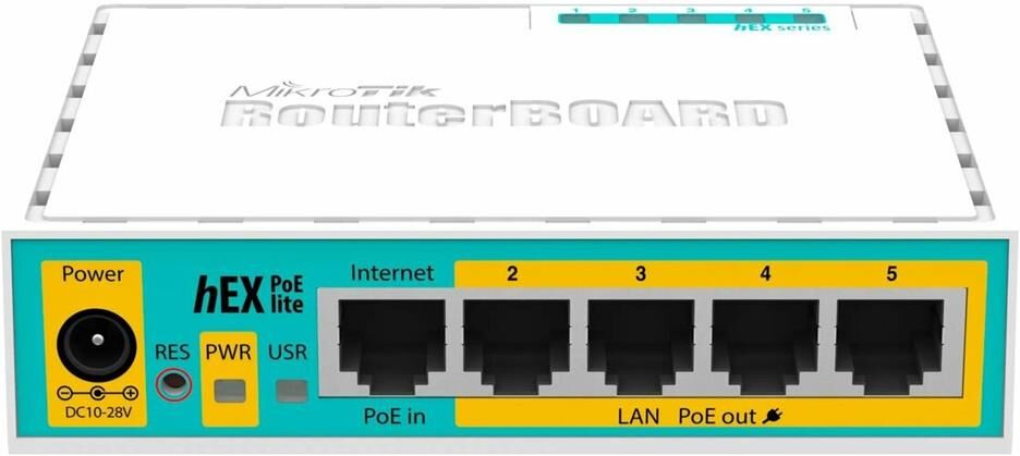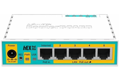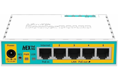 Роутер MIKROTIK hEX PoE lite, белый [rb750upr2], бренд - MIKROTIK. Модель: hEX PoE lite. Небольшой 5-ти портовый Ethernet-роутер c USB-портом и выходом PoE. Порты 2-5 могут питать другие PoE-совместимые устройства с таким же вольтажем, что и на этом роутере. Максимальная мощность тока - 1 А на порт или 2 А на все порты, все Ethernet порты экранированы. Входной интерфейс: 10/100BASE-TX. Процессор: Atheros QCA9533. Название товара: Роутер MIKROTIK hEX PoE lite, белый [rb750upr2].