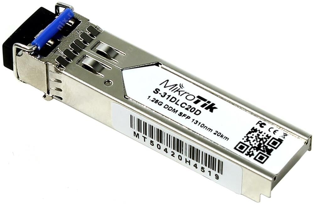 Описание MikroTik S-31DLC20D SFP-трансивер 1.25G со сдвоенным разъемом LC, работающий на 1310 нм для одномодового оптоволоконного соединения длиной до 20 км с поддержкой DDM. Протестирован и совместим с устройствами MikroTik. Также совместим с устройствами других производителей. Технические характеристики Скорость передачи 1250 Мбит/с Длина волны 1310 нм Дальность связи До 20 км Поддержка DDM Да Тип коннектора Dual LC Температура окружающей среды рабочая 0.