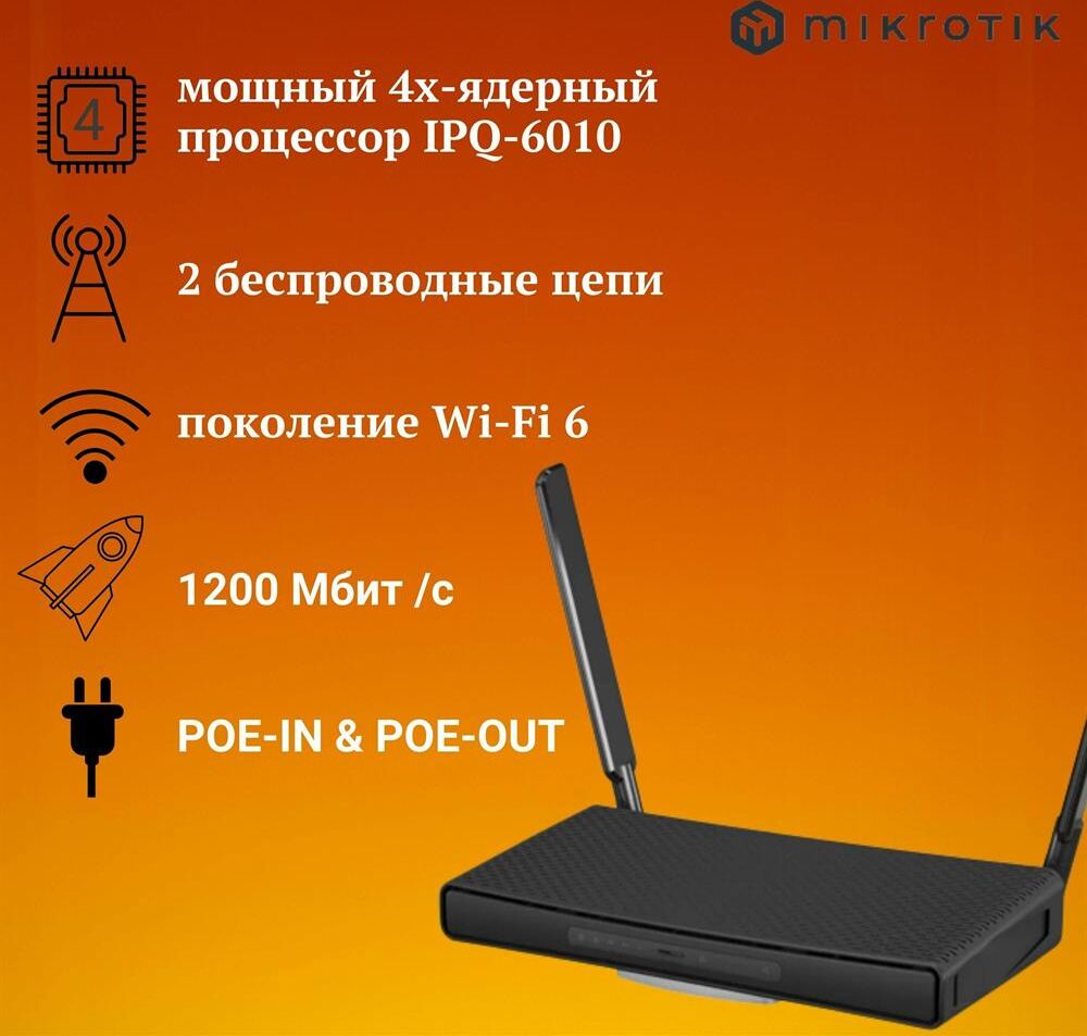 MIKROTIK Wi-Fi роутер hAP ax3, Wi-Fi 6, AX1800, 2.4/5ГГц, 4 LAN, 1xUSB, черный [c53uig+5hpaxd2hpaxd]