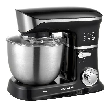 Номинальная потребляемая мощность 1200 Вт, Объем чаши 5 л, Планетарная система смешивания: миксер оснащен уникальной технологией «планетарного» движения, когда венчик совершает обороты в одну сторону, а привод в это время движется по кругу в другую сторону, позволяет осуществлять перемешивание по всему объему чаши, Цвет: черный, Съемная чаша из нержавеющей стали, Съемная прозрачная крышка чаши, Насадки: насадка для смешивания, насадка для замешивания теста, венчик для взбивания яиц и кремов, Лопатка, Противоскользящие ножки, 6 скоростных режимов, Плавная регулировка скоростей, Контроль наклона миксера, Автоматическая блокировка при неправильной установке.
