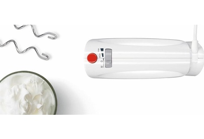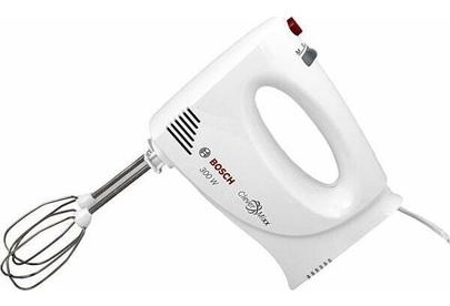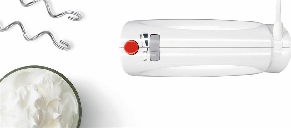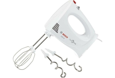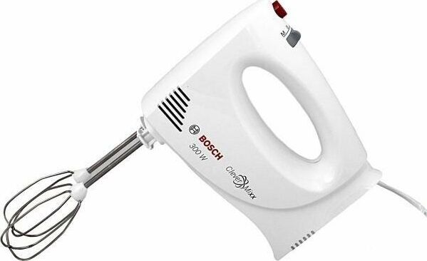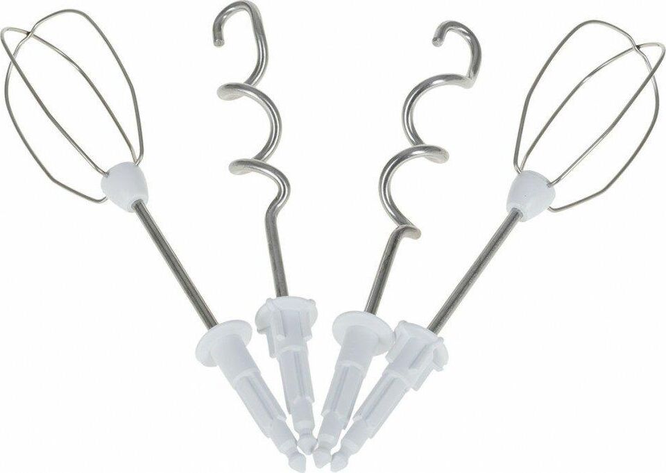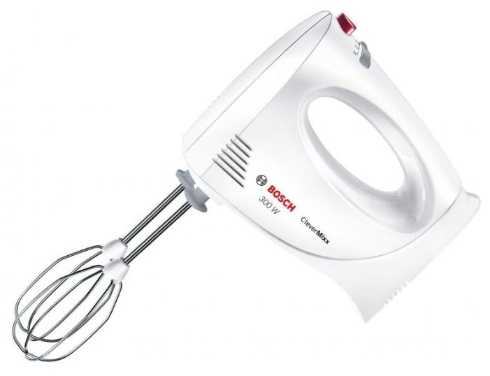 Мощность 300 Вт, Тихий режим работы,2 скорости + дополнительный импульсный режим, 2 венчика специальной формы для оптимального взбивания крема,2 крюка для замешивания теста.