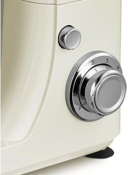 Планетарный миксер / Макс. мощность 1600 Вт / 6 скоростей + импульсный режим / Объем чаши 5 литров / Планетарное движение насадок / Скорость работы в основном режиме: 1 — 49 об/мин, 2 — 59 об/мин, 3 — 86 об/мин, 4 — 110 об/мин, 5 — 148 об/мин, 6 — 170 об/мин / Скорость работы в импульсном режиме 180 об/мин / Материал корпуса: Пластик / Материал чаши: Нержавеющая сталь / Материал крышки: Пластик / Материал насадок: Крюк для замешивания теста — металл, Насадка для смешивания — металл , Венчик для взбивания — нержавеющая сталь + пластик / Длина сетевого шнура: 1 м / Ножки-присоски / В комплекте: Металлический венчик для взбивания, Крюк для замешивания теста, Насадка для смешивания