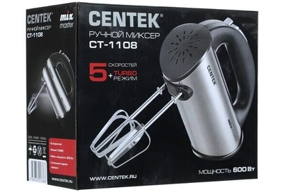 Миксер Centek CT-1108 (черн/сталь) 600Вт, 5 скоростей+турбо, взбивание/замешивание