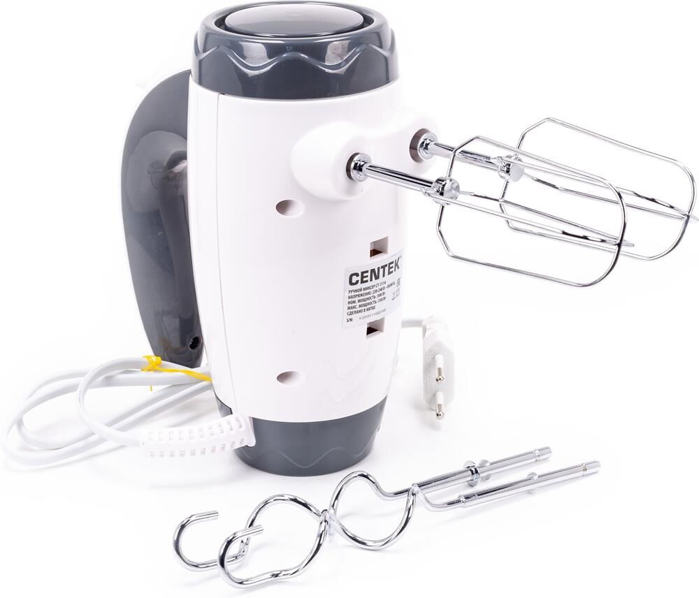 Миксер Centek CT-1114 (белый/серый) 350Вт, 6 скоростей+турбо, взбивание/замешивание