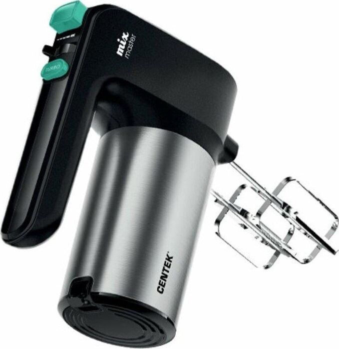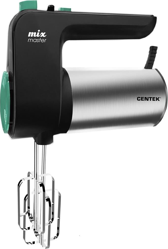 CENTEK CT-1123 Мощность800 Вт Кол-во скоростей6 Режим «Турбо» Стальная отделка корпуса Пара насадок для взбивания Пара насадок для замешивания Кнопка освобождения насадок
