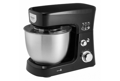 Номинальная потребляемая мощность 1000 Вт, Объем чаши 3,5 л, Планетарная система смешивания: миксер оснащен уникальной технологией «планетарного» движения, когда венчик совершает обороты в одну сторону, а привод в это время движется по кругу в другую сторону, позволяет осуществлять перемешивание по всему объему чаши, Многофункциональный: с его помощью можно взбивать коктейли, замешивать тесто, готовить картофельное пюре и разнообразные кондитерские изделия, Цвет: черный, Съемная чаша из нержавеющей стали, Съемная прозрачная крышка с отверстием для добавления продуктов.