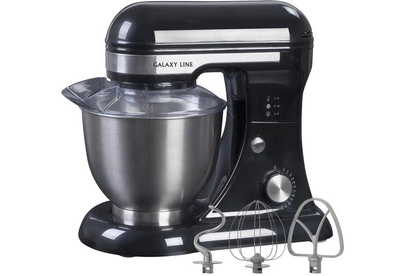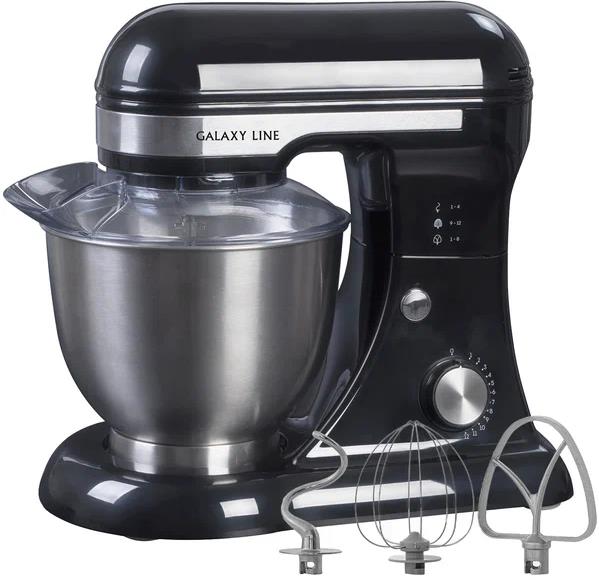 GALAXY LINE GL 2230 ЧЕРНЫЙ Планетарный миксер 700 Вт, 12 скоростных режимов работы, большая чаша из нержавеющей стали объемом 4 л, 3 сменные насадки: насадка - венчик из нержавеющей стали (18/10) для взбивания, насадка из литого алюминия для перемешивания ингредиентов, насадка из литого алюминия для замешивания теста, планетарный принцип вращения обеспечивает идеальный результат, прозрачная защитная крышка с отверстием для добавления ингредиентов, легкая смена насадок, прорезиненные ножки, препятствующие скольжению, 220-240 Вт ~50 Гц