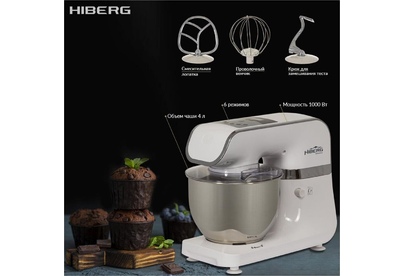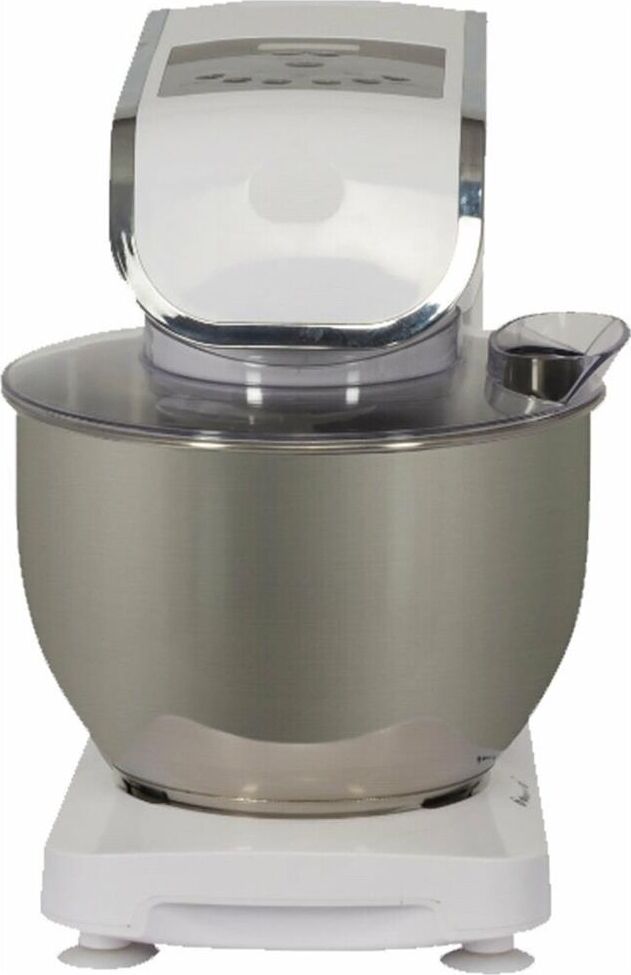 Номинальная потребляемая мощность 1000Вт Цифровая панель с 6 скоростями и LCD дисплеем, Чаша 4 л из нержавеющей стали Напряжение/частота 220-240В/50Гц Прозрачная крышка для чаши, Аксессуары: : крюк для замешивания теста, проволочный венчик для взбивания