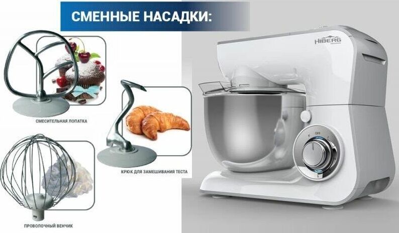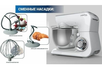 Номинальная потребляемая мощность 1000Вт Чаша 4 л из нержавеющей стали Напряжение/частота 220-240В/50Гц Прозрачная крышка для чаши Аксессуары: : крюк для замешивания теста, проволочный венчик для взбивания яиц, смесительная лопатка Евровилка Цвет к