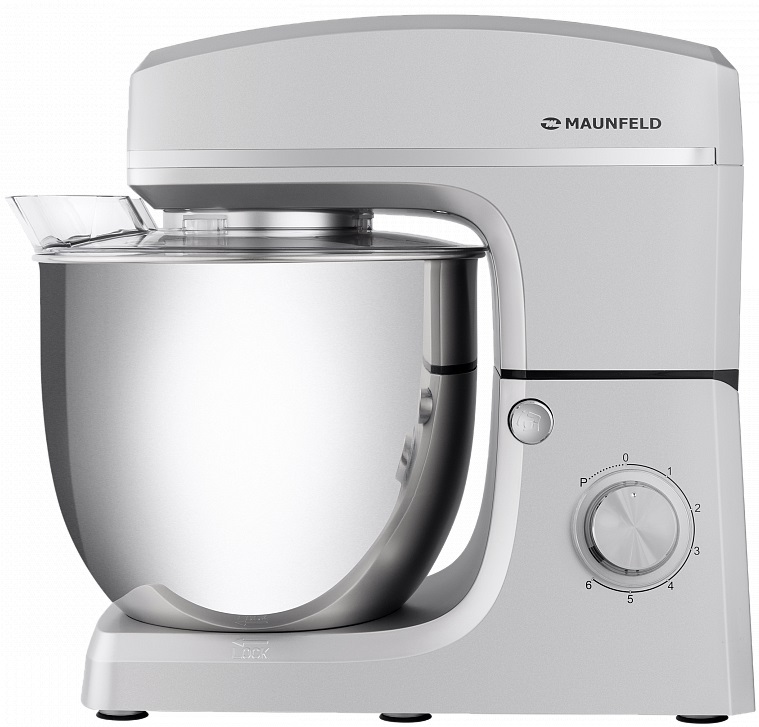 Миксер Maunfeld MF-432S подойдет тем, кто активно готовит в больших количествах, ведь объем его чаши составляет 10 литров, которая изготовлена из нержавеющей стали, этот материал не боится физических повреждений, ржавчины, взаимодействия с различными химическими соединениями, его просто мыть, ведь он легко отмывается от разных продуктов. Сам корпус изготовлен из пластика. Устройство имеет современный и стильный внешний вид, изготовляется в серебристом цвете. Универсальность дизайна позволяет сочетать его с кухней любого интерьера. Для приготовления блюд разнообразного уровня, будь то тесто для домашнего пирога по семейному рецепту или крем для торта или пирожного ресторанного уровня, имеется шесть скоростей. Вы можете использовать импульсный режим или включить или отключить планетарное вращение насадок и привода. В комплектации предусмотрено три насадки: венчик, специальный крюк для замешивания теста, лопатка для более тщательного перемешивания смесей, а также крышка. Чтобы обеспечить безопас