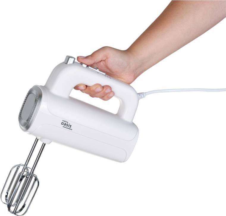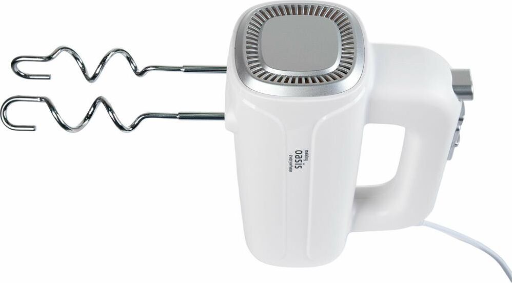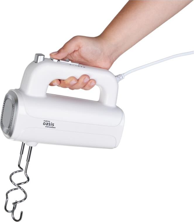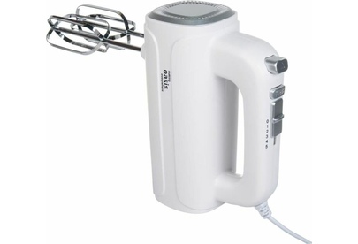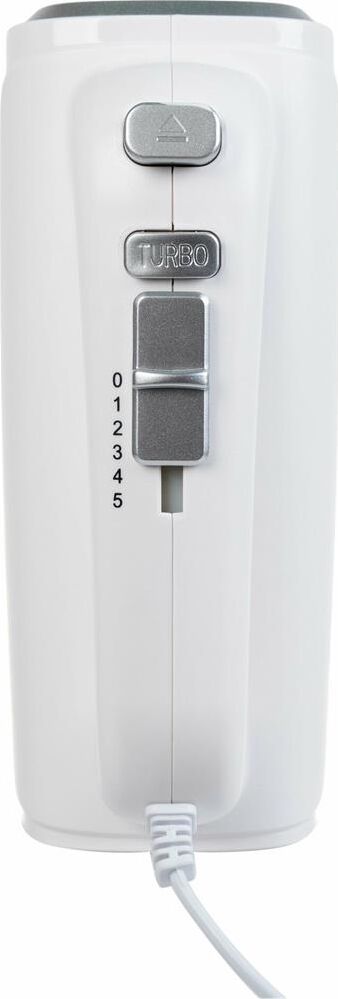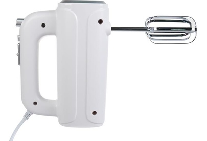 Параметры электросети, В/Гц 220-240 / 50-60 Мощность, Вт 500 Цвет белый, серебристый Количество скоростей 5 Время непрерывной работы 3 мин Размеры изделия, мм 275?85?205 Вес, кг 0,98 2 комплекта насадок (венчики и крюки) Кнопка быстрого отсоединения насадок Регулировка скорости Импульсный режим Защита от перегрева