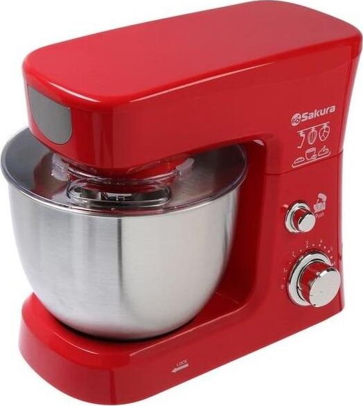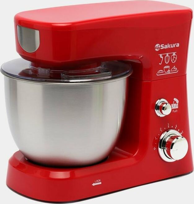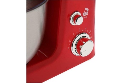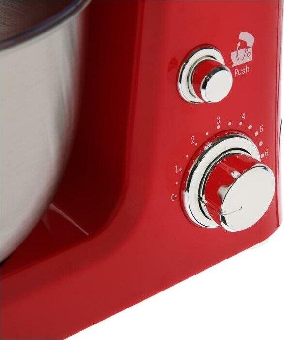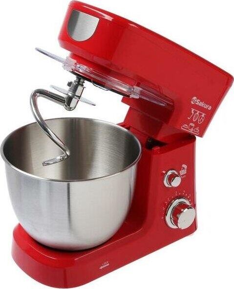 Миксер настольный с планетарным вращением насадок, максимальная мощность 1000 Вт, 6 скоростей работы, чаша из нержавеющей стали (3,5л) с прозрачной крышкой и отвертсием для добавления продуктов в процессе, 3 насадки (объемный венчик, плоский венчик и крюк), лопаточка в комплекте.