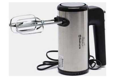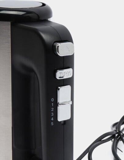 Ручной миксер, мощность 500 Вт, 5 скоростей работы + турбо-скорость, защита от перегрева, корпус и насадки из нержавеющей стали, в комплекте венчики для взбивания и крюки для замешивания теста.