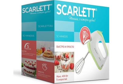 Миксер SCARLETT SC-HM40S05 белый с зеленым