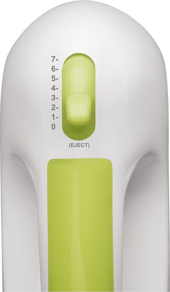 Мощность макс. 200 Вт 7 скоростных режимов 2 венчика для взбивания яиц и крема, смешивания жидкостей 2 насадки для размешивания теста Кнопка для быстрого и легкого извлечения насадок