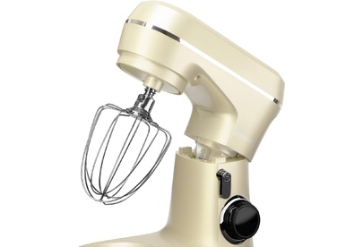 1300 Вт 8 скоростей, импульсный режим. В комплект входит венчик для взбивания, крюки для теста,лопатка для перемешивания, защитный обод 3 насадки Материал чаши — нержавеющая сталь Ёмкость чаши 4,5 л Прорезиненные ножки Цвет бежевый Срок гарантии 12 мес