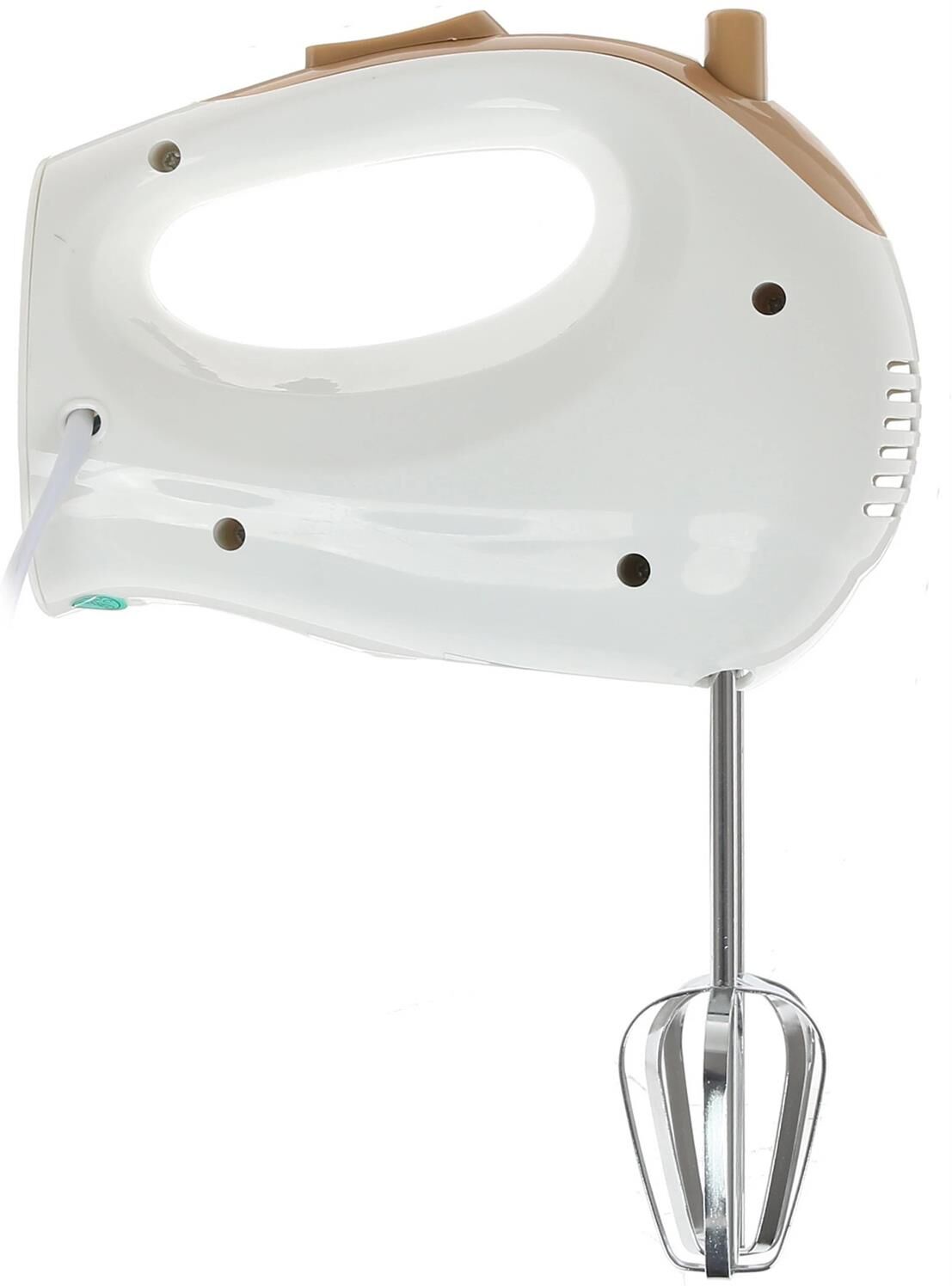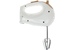 Миксер, 250W, 5 скоростей работы, кнопка извлечения насадок, двойной набор насадок: два венчика для взбивания яиц и кремов, две насадки для размешивания тяжелого теста, смешивание жидкостей, замешивание теста, приготовление пюре, взбивание сливок и белков.