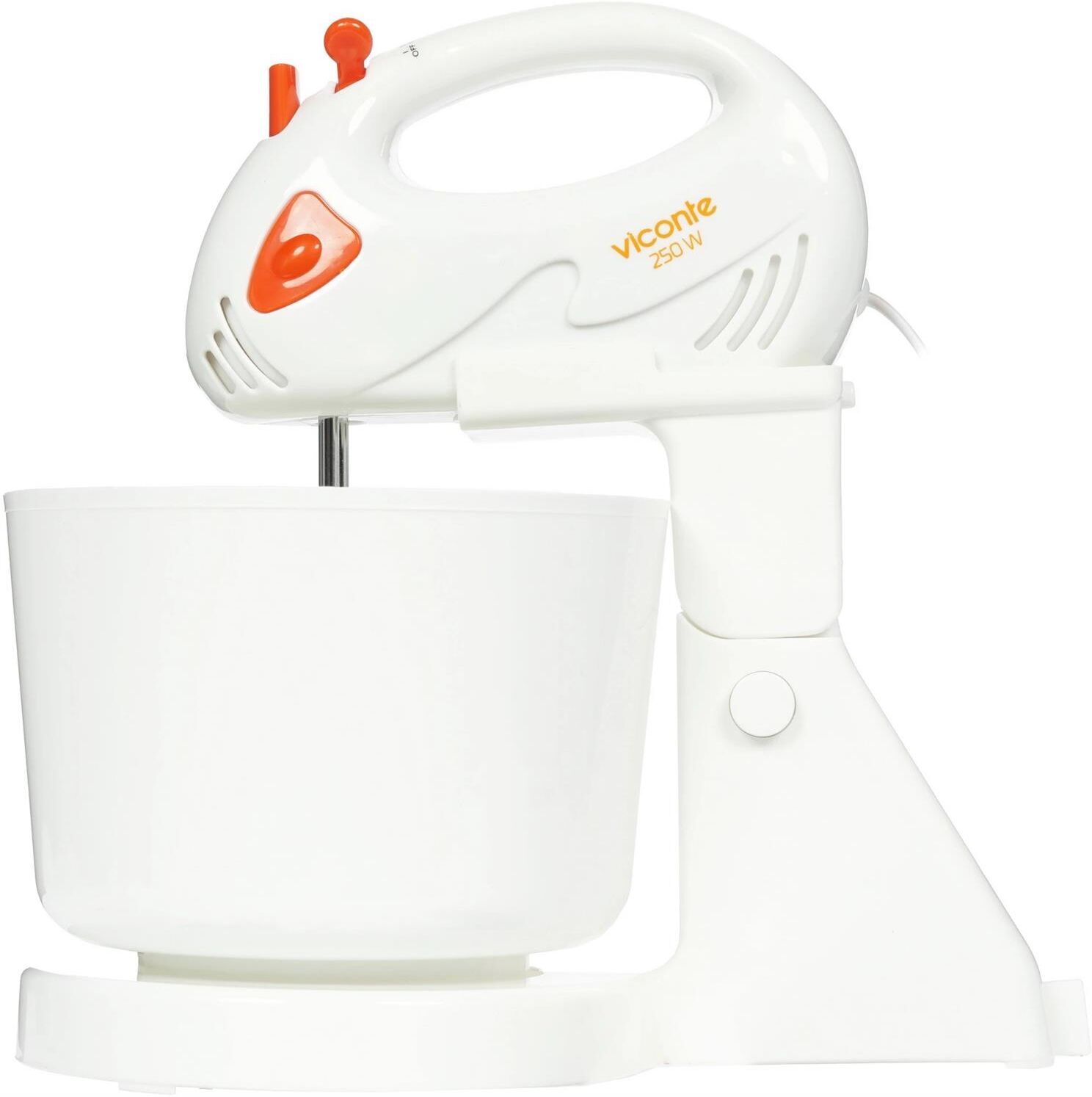 Миксер с чашей, 250W, 7 скоростей работы, пластиковая чаша 2,0л для смешивания. кнопка извлечения насадок, двойной набор насадок: два венчика для взбивания яиц и кремов, две насадки для размешивания тяжелого теста, смешивание жидкостей, замешивание теста, приготовление пюре, взбивание сливок и белков.