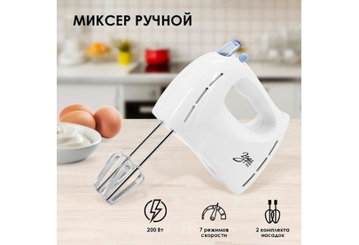 312-02 Миксер электрический Мощность 200 Вт Два комплекта хромированных насадок Кнопка легкого извлечения насадок Семь скоростей 230 B ~ 50 Гц