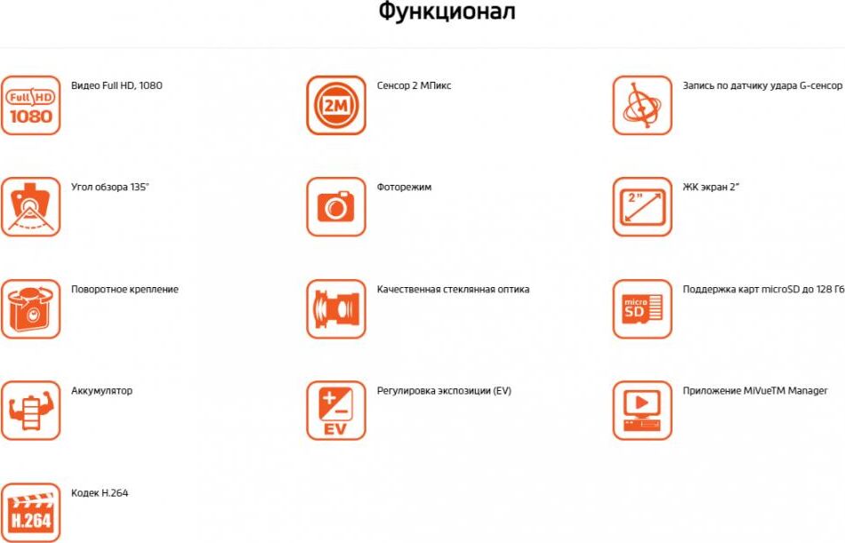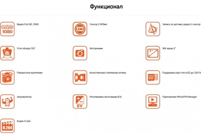 Конструкция видеорегистратора с экраном Количество камер 1 Количество каналов записи видео 1 Запись видео 1920?1080 при 30 к/с Функции датчик удара (G-сенсор) Звук встроенный микрофон Камера Угол обзора 135° (по диагонали) Ночной режим есть Режим фотосъемки есть Особенности поворот, разворот на 180 градусов Запись видео Формат записи MOV H.264 Питание Питание от аккумулятора, от бортовой сети автомобиля Экран Диагональ 2" Хранение данных Поддержка карт памяти microSD (microSDXC) до 128 Гб Дополнительно Особенности крепление на присоске Рабочая температура -10 - +60 Размеры (ширина x высота x толщина) 59x62.3x32 мм Вес 56 г