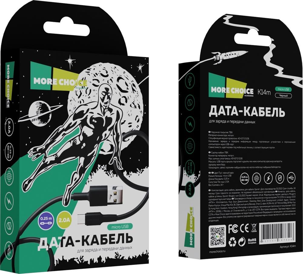 Дата-кабель USB 2A для micro USB More choice K14m 0,25м Разъем: micro USB Совместимость: адаптирован под любую мобильную технику, оснащенную портом micro USB Длина: 0,25 м Сила тока: 2.0А Наружное покрытие: ПВХ Материал коннектора: металл Спецификация медной проволоки: 40+10*2/0,08 Назначение: зарядка и передача информации между портативным устройством и персональным компьютером через USB-порт. Вес: 14 г Комплектация: дата-кабель micro USB 2.0А, держатель для кабеля, буклет. Размер упаковки: 85*150*16 Цвета: Black, White