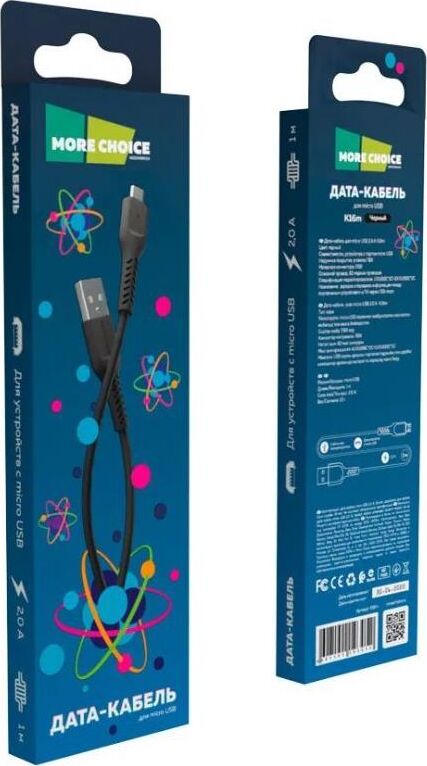 More choice K16m Дата-кабель USB 2.0A для micro USB - 1м Black