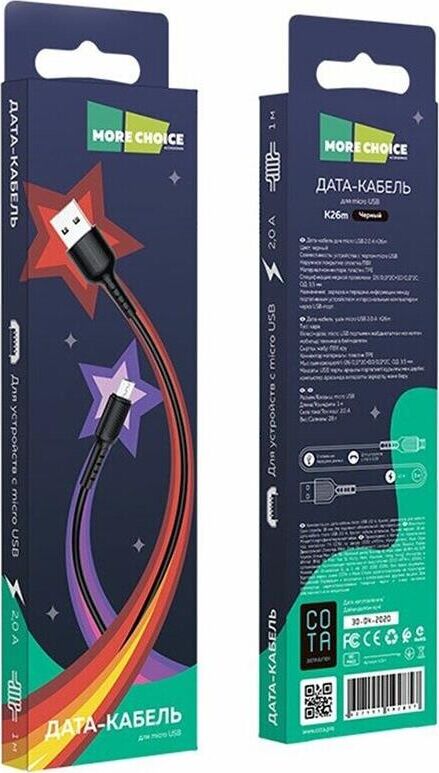 More choice K26m Дата-кабель USB 2.0A для micro USB - 1м Black