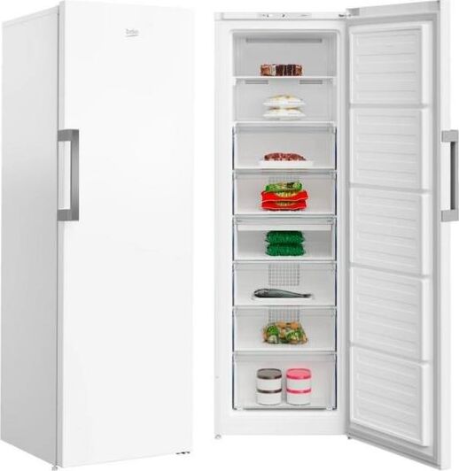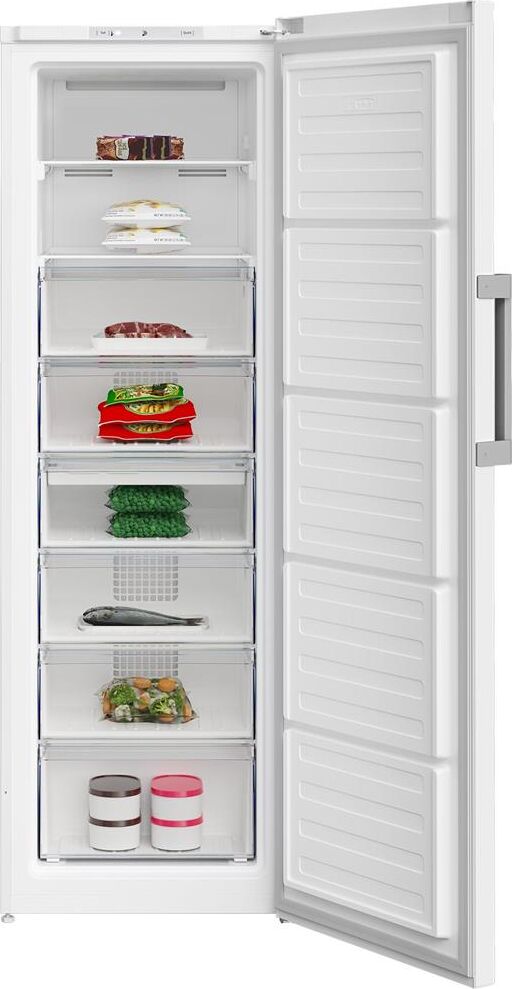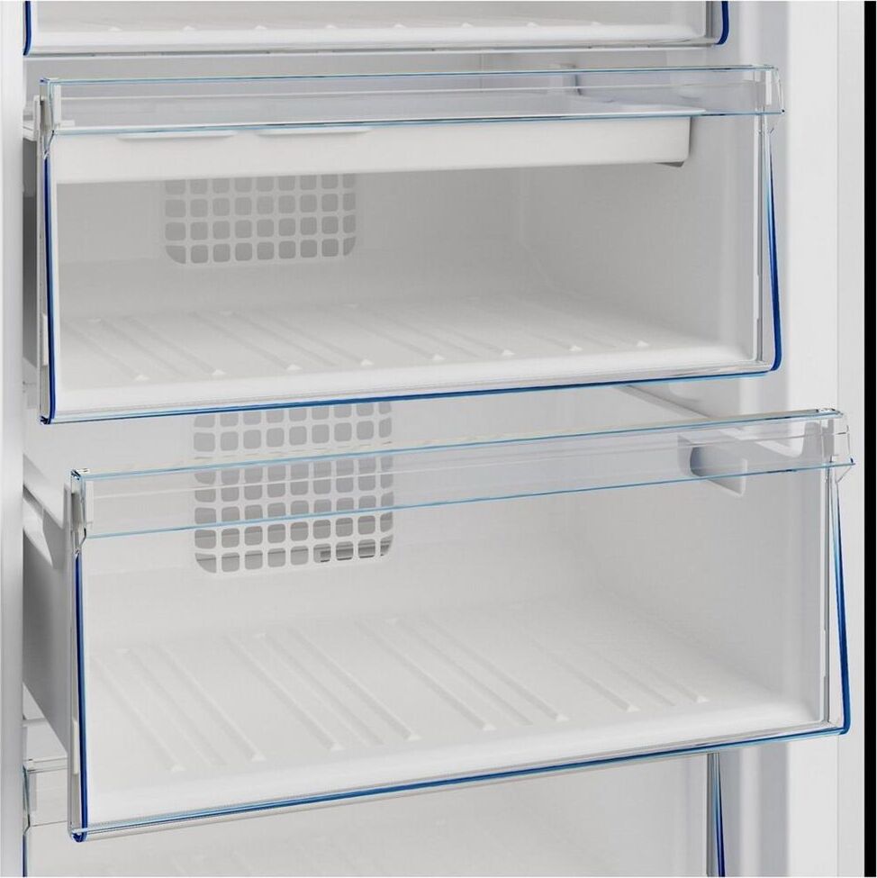 Вертикальный морозильник. Размеры (ВхШхГ), см: 185х60х65. Общий объем 312 л. Полезный объем 275 л. 1 компрессор (R600a). Электронное управление, внутренний дисплей. Система размораживания: No Frost. Быстрая заморозка Quick Freeze. Время сохранения t°C без электричества: 18 ч. Уровень шума: 39 дБ. Перенавешиваемая дверца. Внешняя ручка. Антибактериальное покрытие резинового уплотнителя. Cигнал открытой двери, 6 ящиков, 2 полки, лоток для льда, лоток для пельменей. Мощность замораживания: 16 кг/24 ч. Климатический класс: SN-T. Класс энергетической эффективности: А+. Энергопотребление в год: 324 кВт/ч. Цвет: белый.