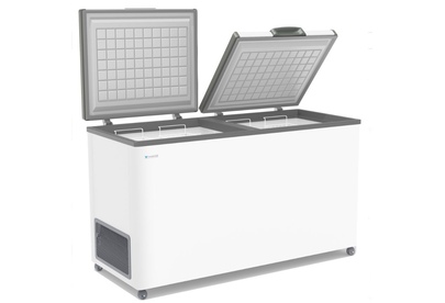 Серия STANDART DOUBLE. Удобный большой ларь с двойной глухой металлической крышкой.Размеры (ДхШхВ),140х60х84см. Охлаждаемый объём (л) 450. Двойная крышка обеспечивает простой доступ к нужной части ларя, сокращая потребление электроэнергии на поддержание температуры. Внутри морозильный ларь не разделен, что позволяет удобно хранить крупные и мелкие продукты. Темп.Режим -18…-22. 1 корзина, колеса. Мощность, 200Вт.