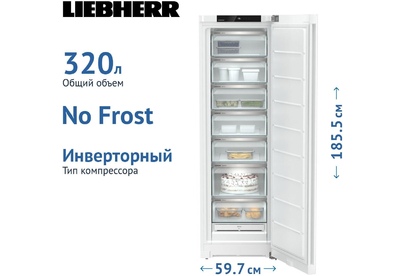 Морозильная камера с системой NoFrost Особенности: FrostProtect Не все морозильные камеры устанавливаются в отапливаемом помещении - некоторые стоят даже в холодных гаражах или сараях. Хорошо, что ваш Liebherr наилучшим образом подготовлен к такой прохладной обстановке: ведь все компоненты рассчитаны на температуру окружающей среды до -15 °C и гарантируют работу. NoFrost Открывая морозильное отделение, вы хотите видеть замороженные продукты, а никак не лёд или иней. NoFrost защищает морозильную камеру от нежелательного обледенения, расходующего много энергии и порой стоящего достаточно дорого. NoFrost означает: никакого больше утомительного и продолжительного размораживания морозильного отделения, больше времени для других дел - и экономия денег. Сенсорный экран Реальность прикосновения: сенсорный экран позволяет легко и интуитивно управлять вашим устройством Liebherr. Все функции наглядно расположены на экране. Легким касанием пальца вы можете легко выбрать функции или проверить текущую температуру холодильн
