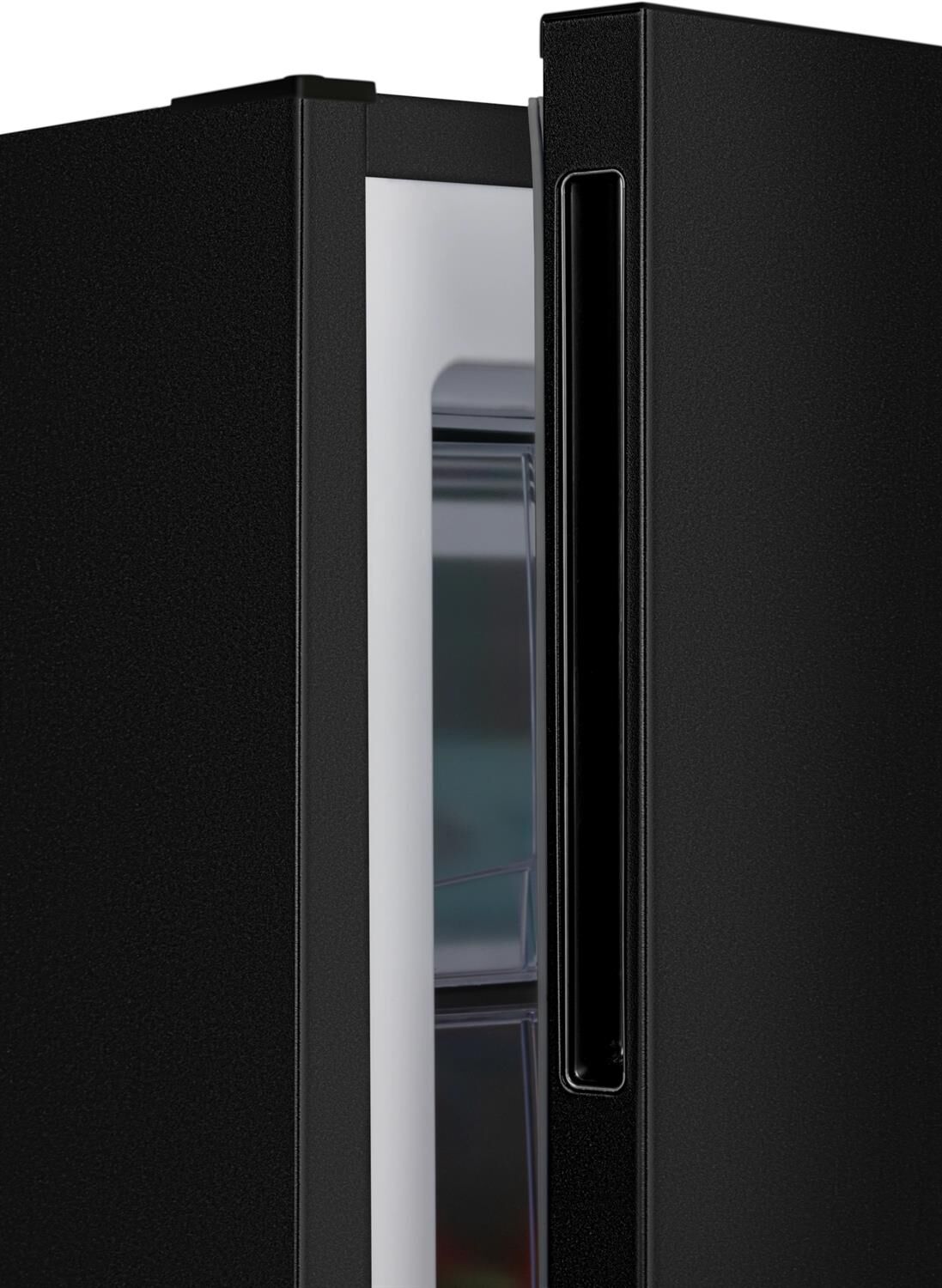 139 л, класс А+, 4 секции МК, 4 выдвижных ящика из пластика, новые вертикальные ручки, съемный уплотнитель двери, 109х57х63 см, цвет: черный матовый