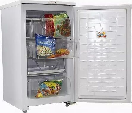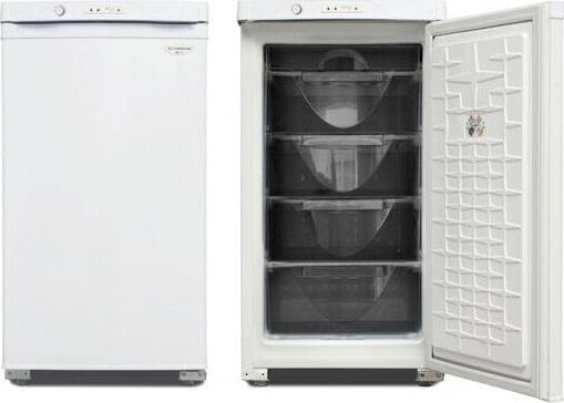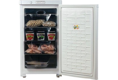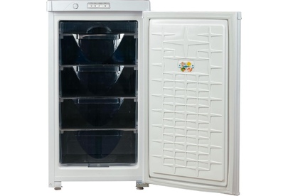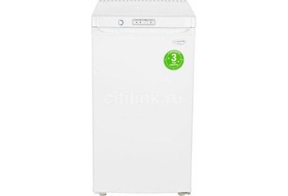 Габариты (ВхШхГ) 89.7х48х60см. Общий объем 94л. Тип управления: механический. 1 компрессор. Мощность замораживания до 9 кг/cутки. Размораж-е ручное. Температура в режиме хранения не выше -18C, в режиме замораживания -24С. Класс энергопотребления В Возможность перевешивания двери Цвет: белый.