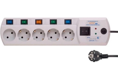 Входная вилка, тип: EURO. Длина шнура: 2. Защита телефонной линии: Да. Индивидуальные выключатели розеток: есть. Максимальный ток нагрузки: 10. Максимальная нагрузка: 2200. Номинальное напряжение питающей сети: 220. Максимальный импульсный ток помехи: 9000. Подавление импульсных помех: да. Подавление высокочастотных помех: да. Максимальная рассеиваемая энергия: 440. Индикация исправности защиты: Да. Защита от короткого замыкания: термобиметаллический предохранитель. Количество выходных розеток: 5. Габариты упаковки (ед) ДхШхВ: 0.405x0.133x0.066. Вес упаковки (ед): 0.92. Гарантия: 36 мес.. Цвет: белый. Особенности: индивидуальные выключатели розеток. Функции: защита телефонной линии. Максимальная нагрузка: 2200 Вт. Количество выходных розеток: 5. Входная вилка: EURO. Длина шнура: 2 м