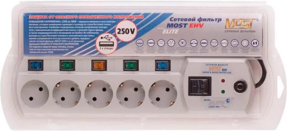 MOST Сетевой фильтр EHV, 2м, белый [моsт енv- 2м бел]