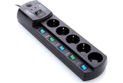 Входная вилка, тип: EURO. Длина шнура: 5. Защита телефонной линии: Да. Индивидуальные выключатели розеток: есть. Максимальный ток нагрузки: 10. Максимальная нагрузка: 2200. Номинальная мощность: 2200. Номинальное напряжение питающей сети: 220. Частота сети: 50. Максимальный импульсный ток помехи: 20000. Подавление высокочастотных помех: да. Максимальная рассеиваемая энергия: 700. Защита от перегрева: Автоматический (термобиметаллический) предохранитель. Количество выходных розеток: 5. Габариты упаковки (ед) ДхШхВ: 0.455x0.133x0.067. Вес упаковки (ед): 0.96. Гарантия: 36 мес.. Цвет: черный. Номинальная мощность: 2200 ВA. Особенности: индивидуальные выключатели розеток. Функции: защита телефонной линии. Количество выходных розеток: 5. Длина шнура: 5 м. Максимальная нагрузка: 2200 Вт. Входная вилка: EURO