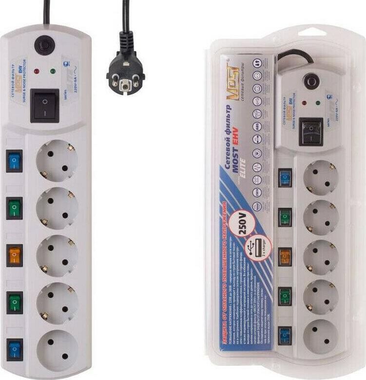 MOST Сетевой фильтр EHV 2м (5 розеток) белый (коробка)