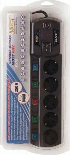 MOST Сетевой фильтр EHV 2м (5 розеток) черный (коробка)