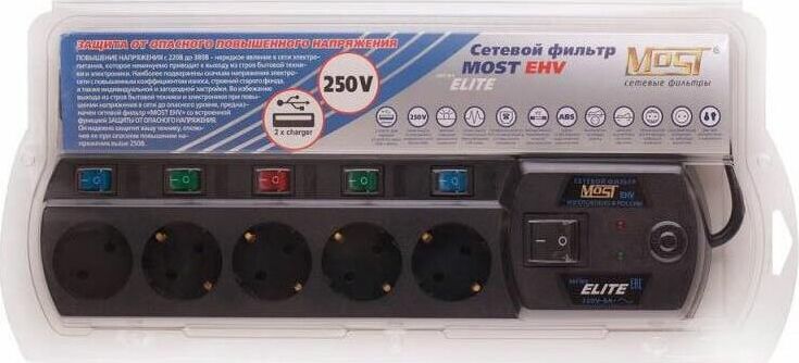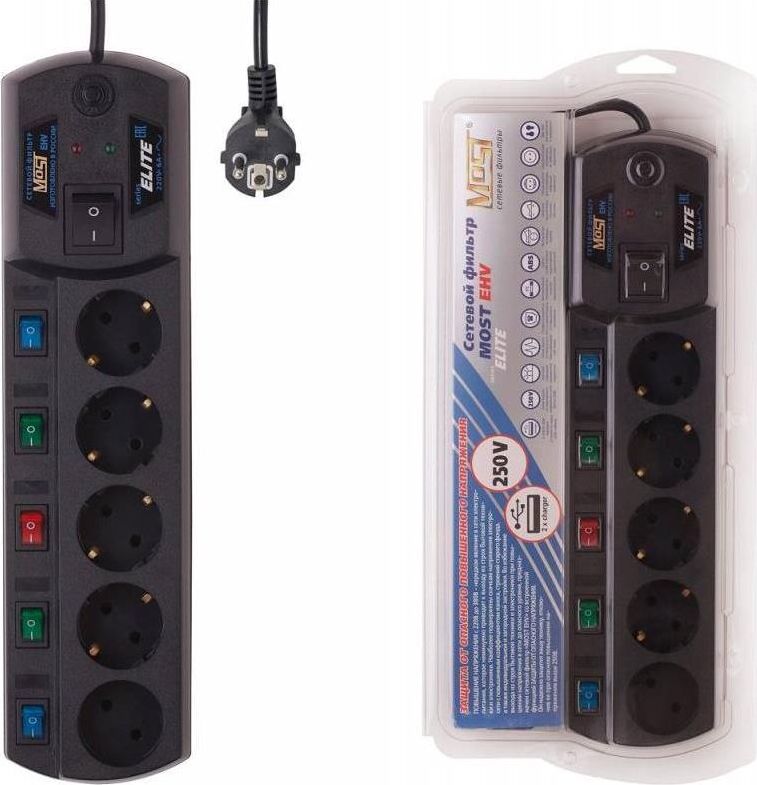 MOST Сетевой фильтр EHV 5м (5 розеток) черный (коробка)